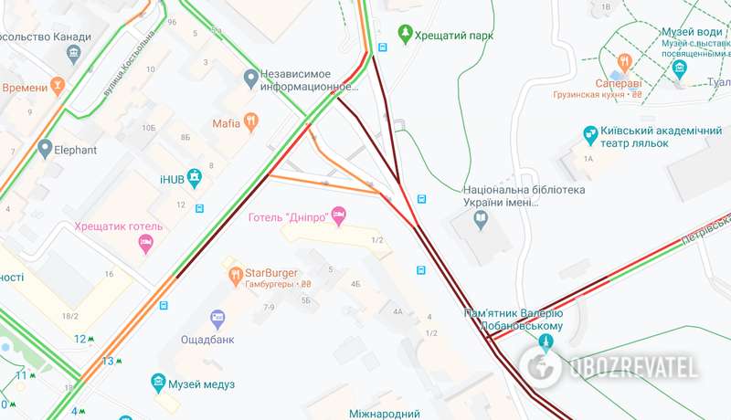 Ведь, судя по информации сервиса Google Maps, сейчас там уже заблокирован ряд улиц. Ведь автобусы перекрыли Европейскую площадь и растянулись по Крещатику вплоть до Майдана.