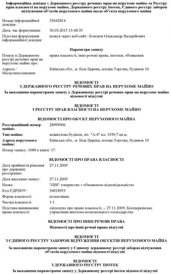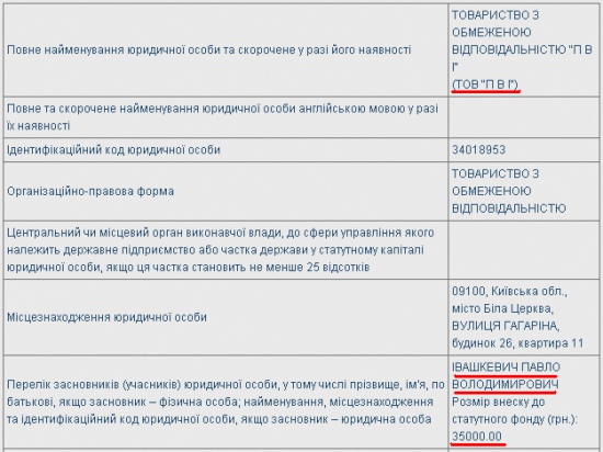 Як зазначено у Державному реєстрі речових прав на нерухоме майно, єдиним власником офісного центру значиться ТОВ "ПВІ", що належить Павлу Івашкевичу. Останній - двоюрідний брат дружини Володимира Полочанінова.