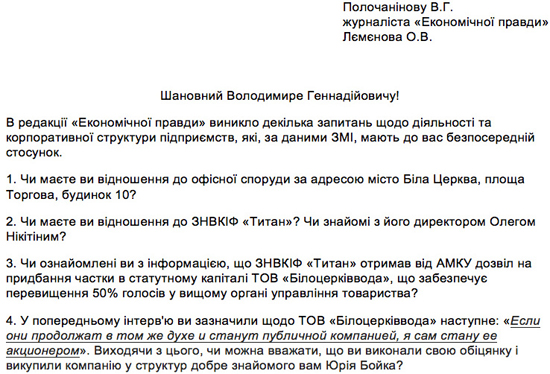 Автор поставив Володимиру Полочанінову низку питань, але він на них не відповів.