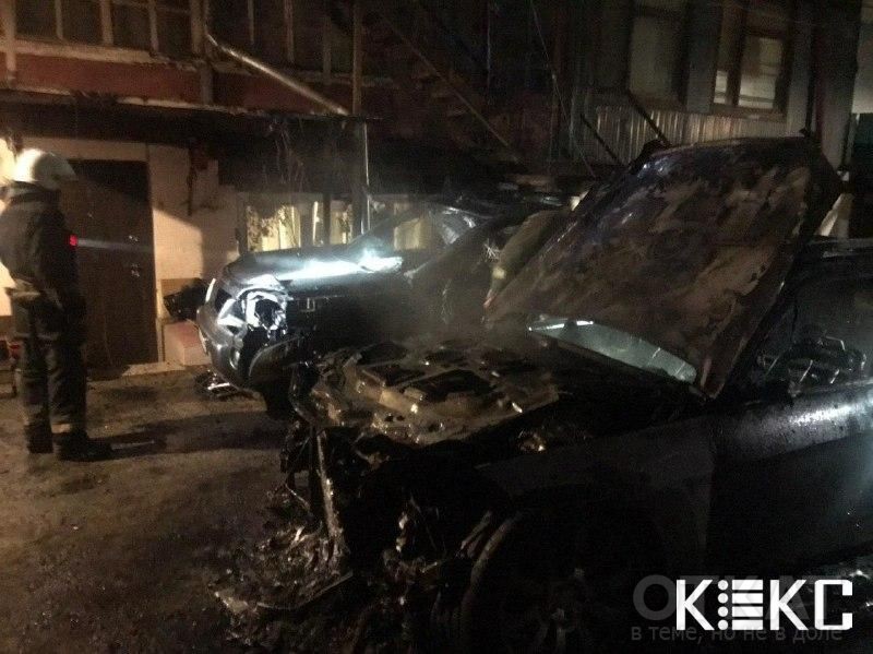 Оба авто полностью уничтожены пламенем. По словам жителей двора, перед воспламенением машин, они слышали громкие хлопки.