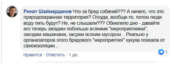 «Что за бред? А ничего, что это природоохранная территория? Откуда вообще-то потом люди воду пить будут?», — не сдержал эмоций Ринат Шаймарданов.