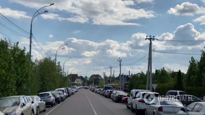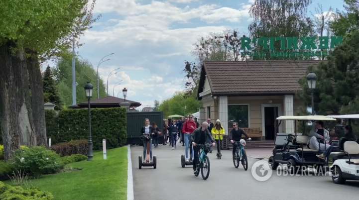 Перед "Межигорьем" в селе Новые Петровцы машины на обочине выстроились в огромную колонну. Около входа в природный комплекс повесели предупреждение о том, что посещение разрешено только при соблюдении всех правил карантина. При этом лишь единицы находились в масках.