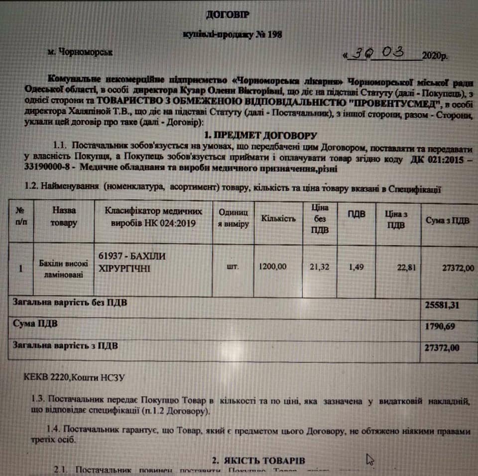Ранее общественные активисты обратили внимание на существенные завышения цен при закупках спирта. Черноморская больница и Белозерская ЦРБ приобретают у одного поставщика этиловый спирт. При чем Черноморская - на 10 грн/за флакон (в половину!!!) дороже, чем Белозерская.