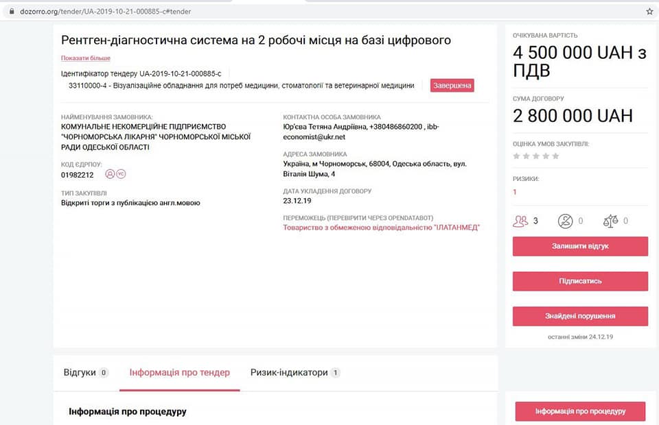 Нашумевшей схемой Кузарь стала покупка рентген-аппарата. Согласно журналистскому расследованию, проблемы с дорогостоящей покупкой начались с самого начала. Первая попытка приобретения аппарата оказалась провальной: цена была вызывающе завышенной. Конечно, произошел скандал, Кузарь получила по рукам от депутатов горсовета, а тендер отменили. Со второй попытки тендерный комитет во главе с Татьяной Юрьевой (доверенное лицо Елены Кузарь) тихо составил и разместил необходимую документацию на сайте Дозорро. Рентген купили, даже сэкономив. Но, как позже рассказала Кузарь, купили плохой аппарат (!!!). При этом тендерную документацию и протокол, на основании которого заключили контракт, Кузарь подписала без замечаний к качеству аппарата.