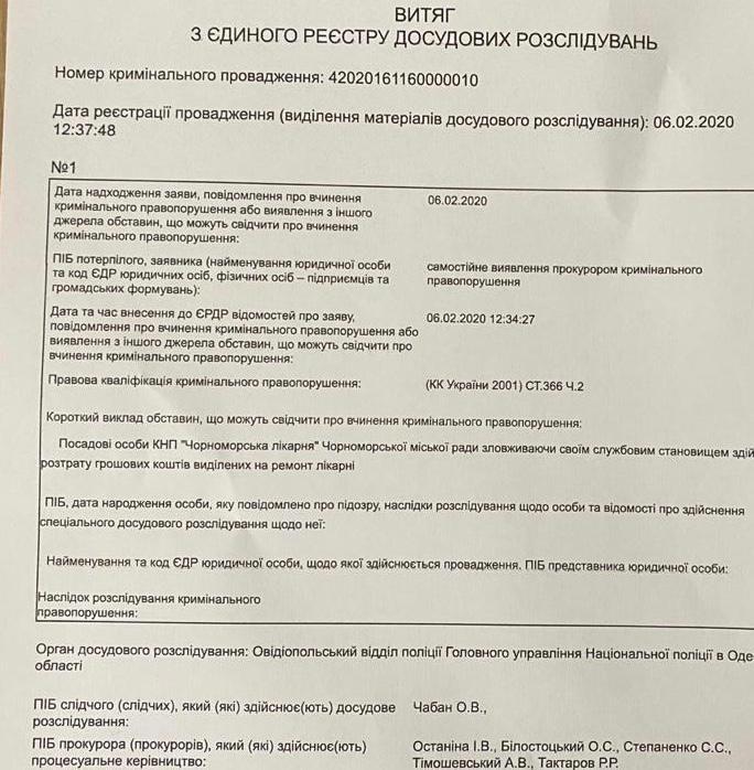 Реакция правоохранителей есть – на руководящие лица Черноморской больницы открыто несколько уголовных производств.