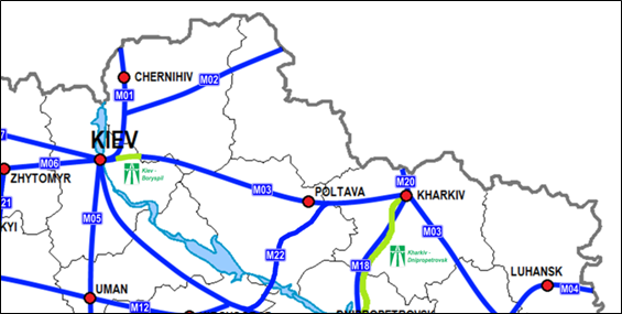 ⮚ автомагістраль М02 (Е101) Москва – КПП «Троеборное» (Севск) / КПП «Бачівськ» (Глухів) – Батурин – Кіпті – Київ;