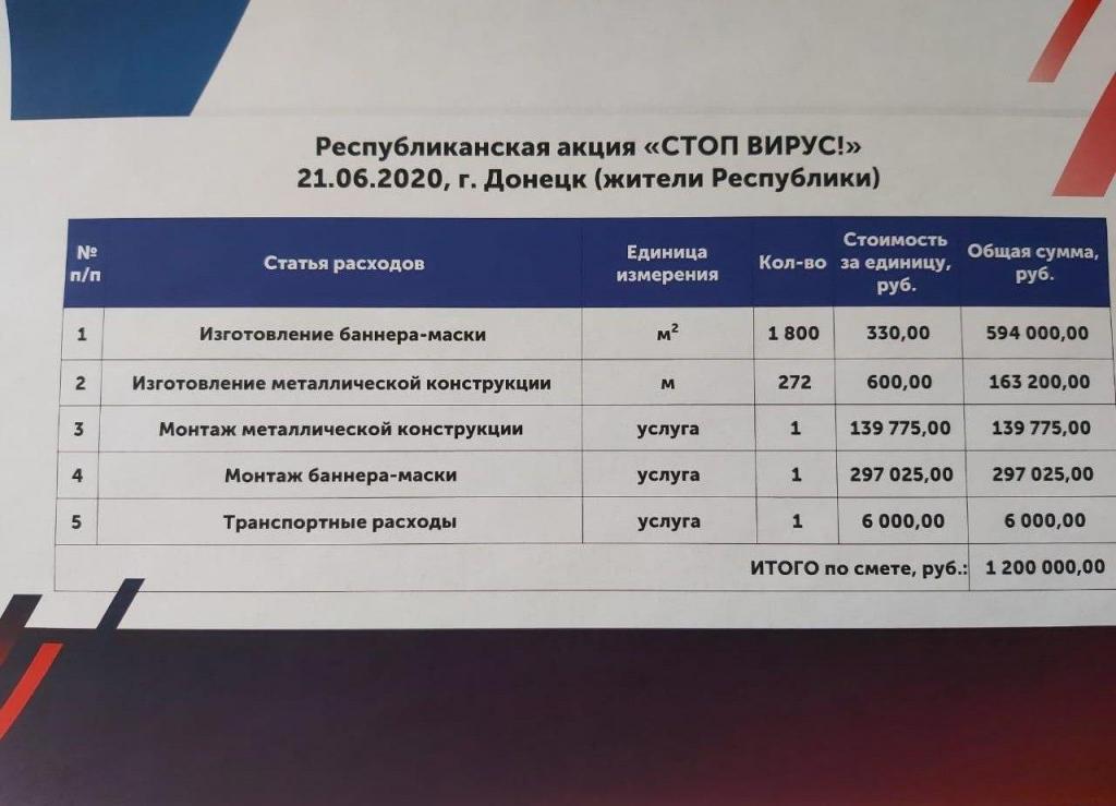 Как уточняет «Вольнодумец», на эту акцию «власти» планируют потратить 1 200 000 рублей. По предположениям ресурса медики «ДНР», которые борются с эпидемией коронавируса в условиях дефицита элементарных средств защиты, будут «очень рады» такому подарку.
