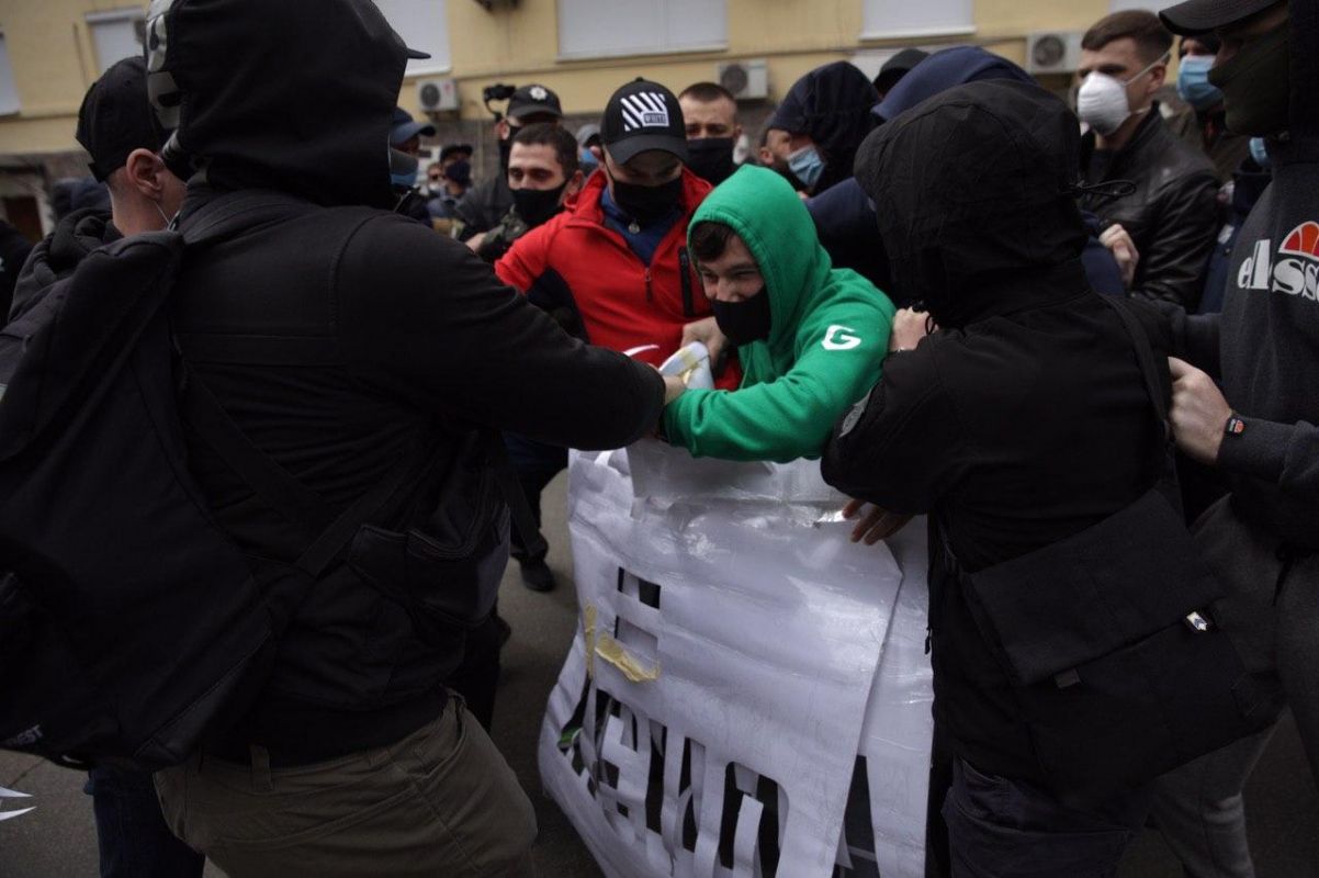Активисты Нацкорпуса устроили пикет под стенами киевского офиса “Оппозиционной платформы – За жизнь”. Главные требования – расследовать антиукраинскую деятельность членов партии ОПЗЖ и, в частности, регулярные встречи Виктора Медведчука с чиновниками страны-агрессора.