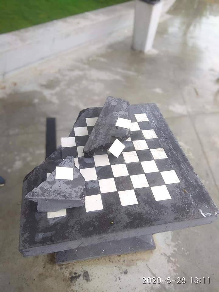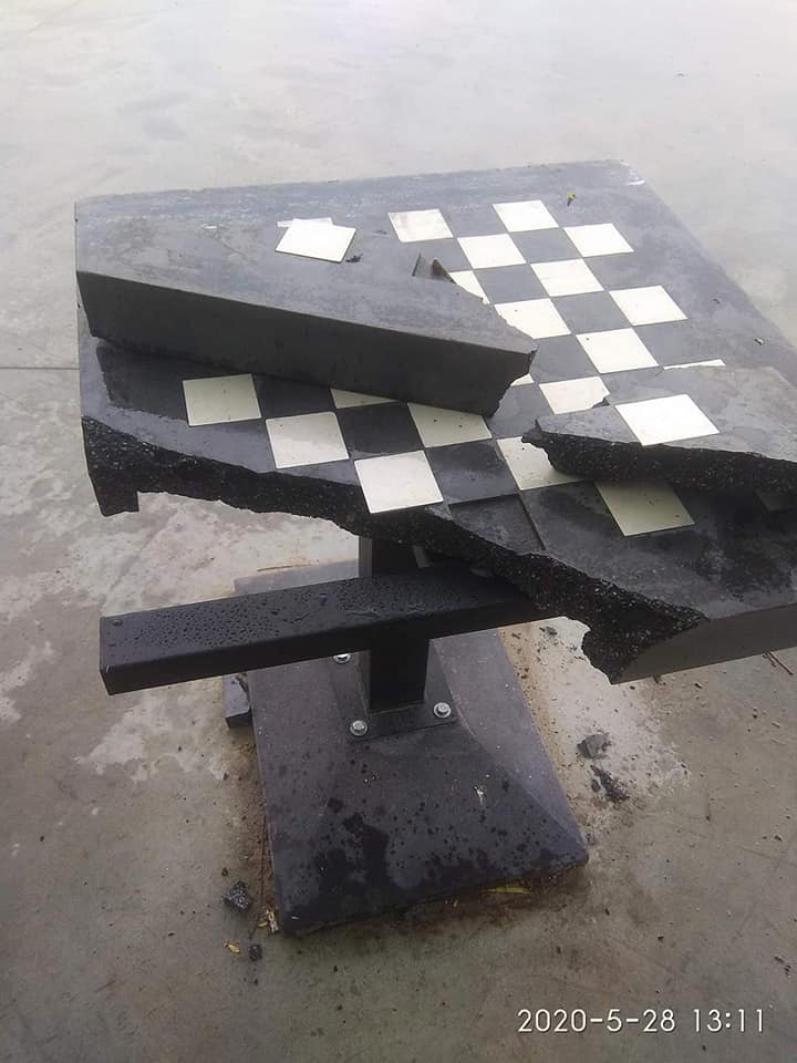 В строящемся фитнес-парке у озера Лебединое в Дарницком районе Киева неизвестные разбили недавно установленные доски для игры в шахматы.