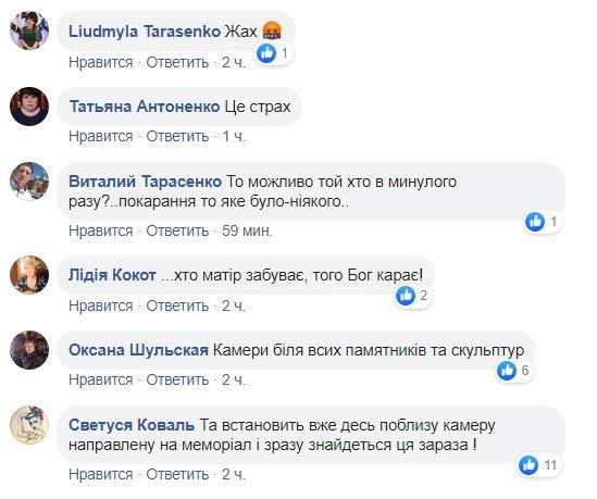 "Война гибридная, а это одно из ее проявлений", "Да установите уже где-то поблизости камеру направленную на мемориал и сразу найдется эта зараза", "Какой-то сепаратист завелся", "У него ведь тоже мать есть", - пишут комментаторы.