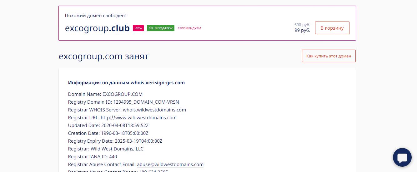 Доменное имя – главный аргумент в легенде компании. Он старый, зарегистрирован в 1996 году. Во всех обзорах это подается как преимущество: дескать, сайту со старым доменом можно доверять. Его проверка дает следующую картину: