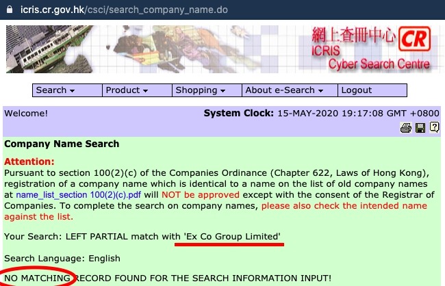 Особенно циничным выглядит предложение владельцев сайта проверить компанию. Ведь сервис, который они же и предлагают, ничего не знает о компании Ex Co Group Limited. Другими словами, компания с таким названием никогда не была зарегистрирована в Гонконге.