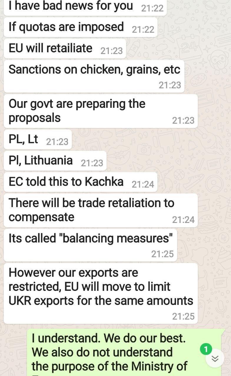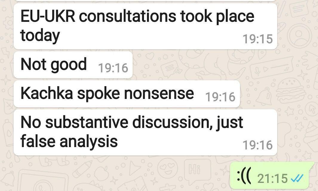 Telegram-канал Инсайдер UA опубликовал переписку участника переговоров со стороны ЕС и представителя украинского бизнеса.