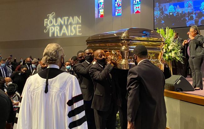 Прощальную речь на церемонии произнес активист за гражданские права чернокожих, баптистский священник и бывший советник Белого дома при экс-президенте Бараке Обаме Альфред Чарльз Шарптон-младший.