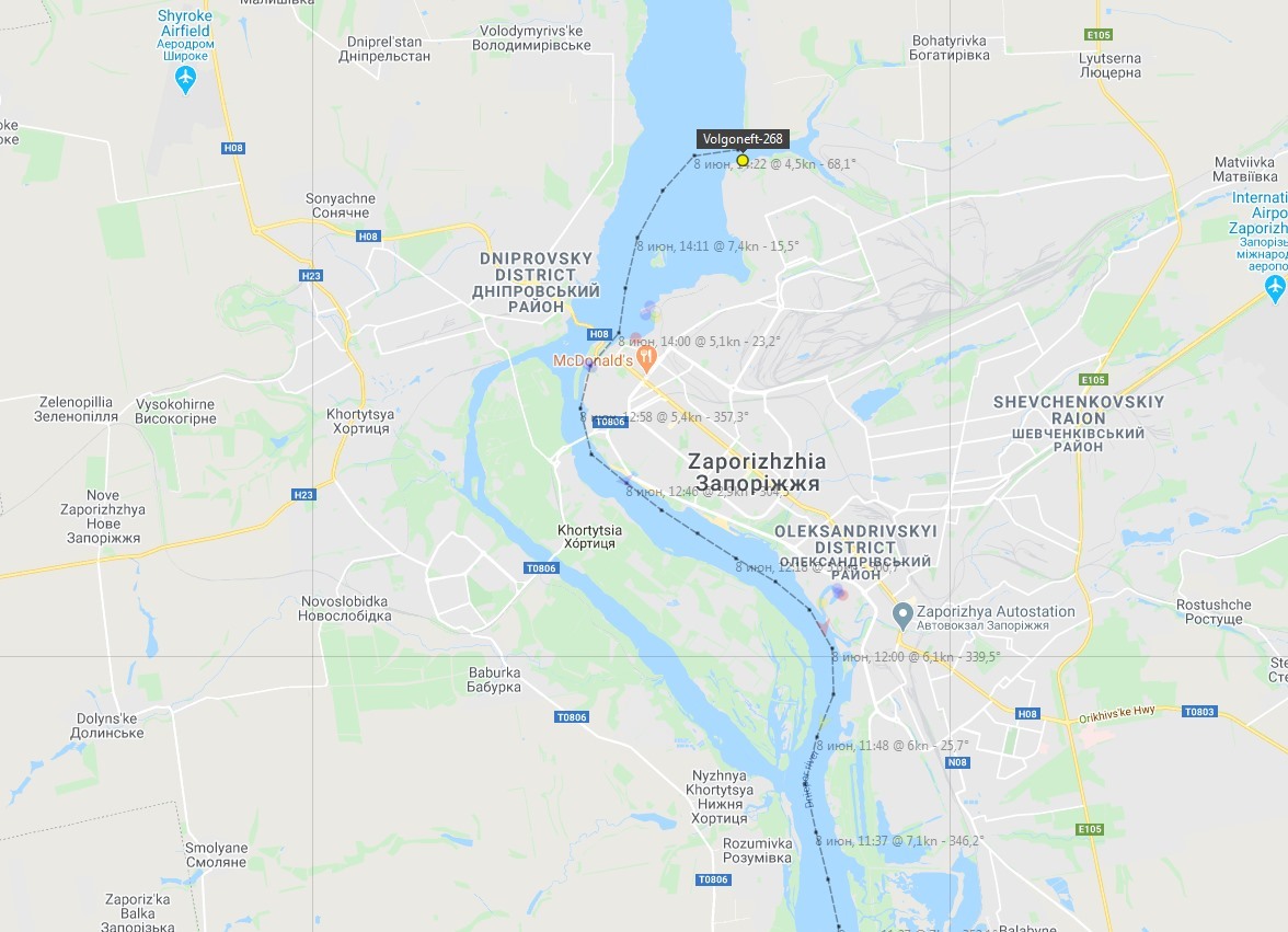 Представитель Института черноморских стратегических исследований Андрей Клименко в качестве примера привел российский танкер Volgoneft-268 (регистрация в Ростове), который 8 июня разгружал привезенное из Батуми (Грузия) топливо в топливохранилище "Звезда" в Запорожье (принадлежит Госрезерву).
