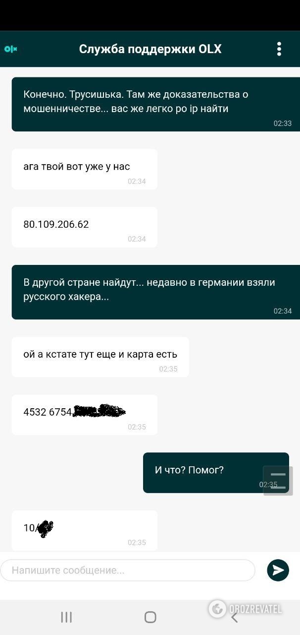 "Меня остановило то, что я никогда не общался со службой поддержки OLX по чату, только по электронной почте. И то – я успел внести данные карточки, но сразу заблокировал. Сегодня мою карточку "прощупали" – пытались снять небольшую сумму. Причем не в гривнях, а в рублях", – рассказал читатель.