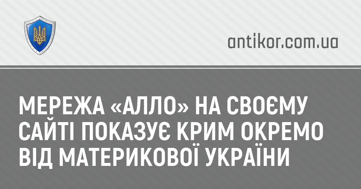 Мережа «АЛЛО» на своєму сайті показує Крим окремо від материкової України