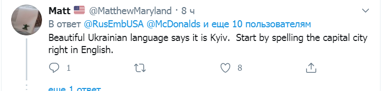 Действия России вызвали реакцию у многих пользователей сети. Некоторые отметили неправильное написание слова Kyiv английском языке. Посольство РФ же написало – Kiev.