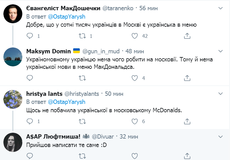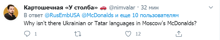 Другие же поинтересовались, почему в меню российского McDonald’s нет украинского и крымскотатарского языков?