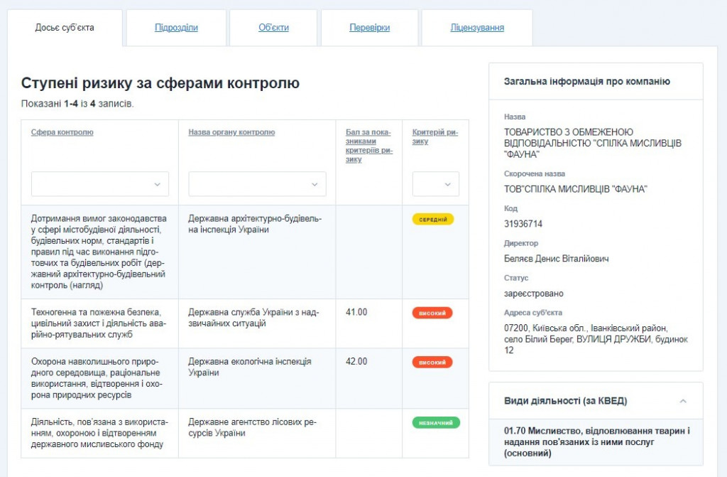 За даними аналітичної системи YouControl, ТОВ “Спілка мисливців “Фауна” (*) засновано в 2002 році в селі Білий Берег Іванківського району зі статутним капіталом в 16,5 тис. гривень. Його керівник – Денис Бєляєв, засновник – уродженець Дніпра Геннадій Буткевич.