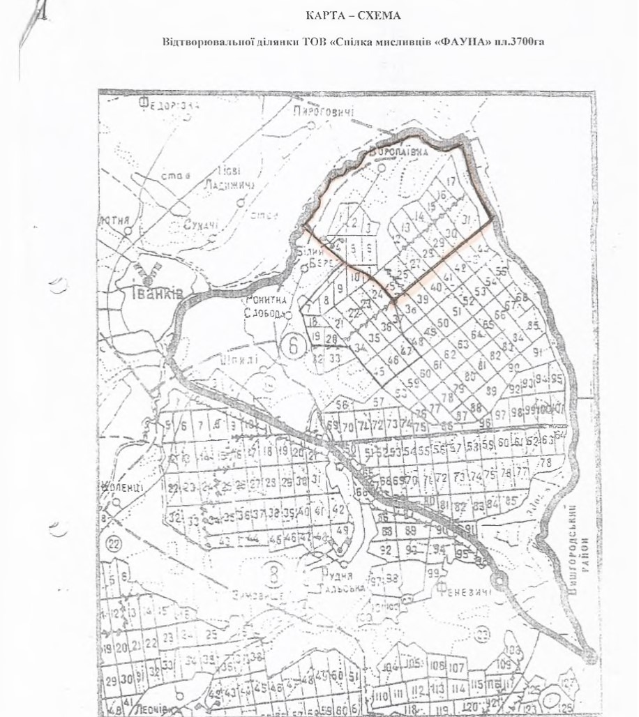 Згідно до проєкту, мисливські угіддя, що знаходяться на території Іванківського району Київської області загальною площею 8900 га строком на 49 років надаються у користування ТОВ “Спілка мисливців “Фауна”.