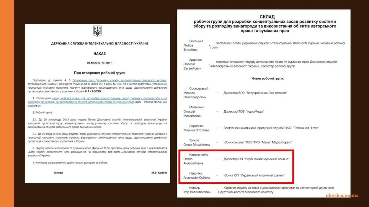 Вместе с Неволиной в состав рабочей группы зашел непосредственно директор УМА Павел Калиниченко, который возглавляет Украинский музыкальный альянс и сегодня.