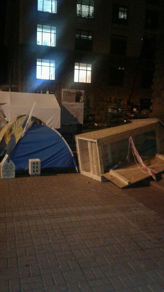 Одна из очевидцев событий рассказала, что погромщики кричали, что протестующие выступают против мэра Киева Виталия Кличко и употребляют спиртные напитки. На самом деле люди пили чай и готовились ко сну.