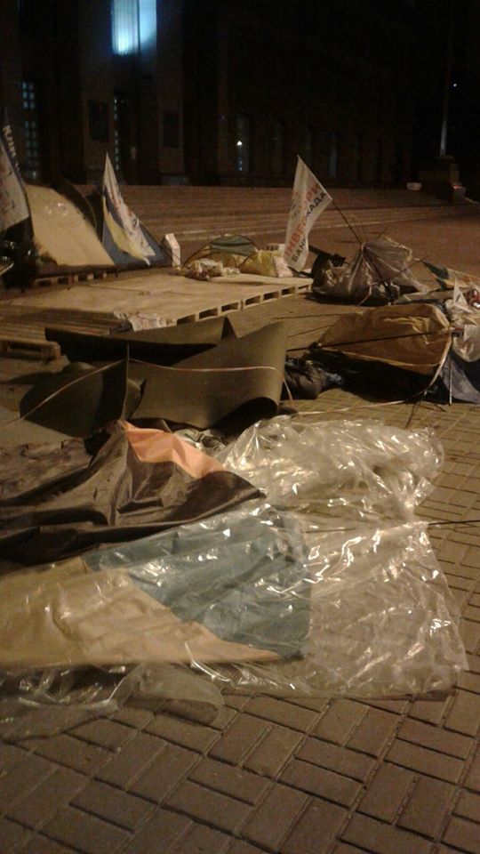 Ночью пятницы, 26 июня, неизвестные люди напали на палаточный городок инвесторов банка «Аркада», установленный под зданием Киевской городской государственной администрации.