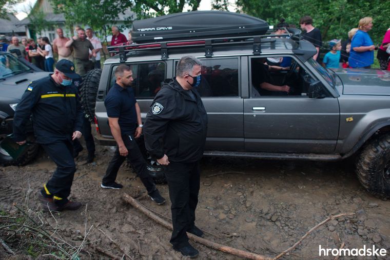 Вместе с президентом в Ланчин приехали глава МВД Арсен Аваков и глава ГСЧС Украины Николай Чечеткин, их сопровождал сельский председатель и сами жители.