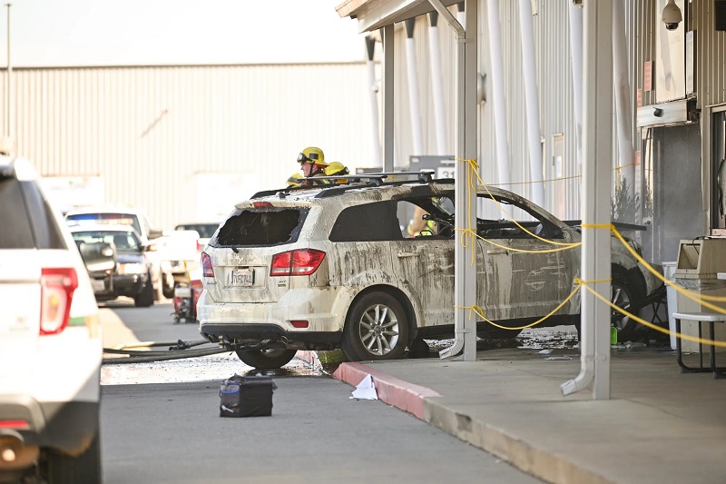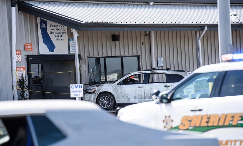 Нападавший сперва протаранил на авто здание, в котором начался пожар. После этого стрелок открыл огонь из полуавтоматического оружия.