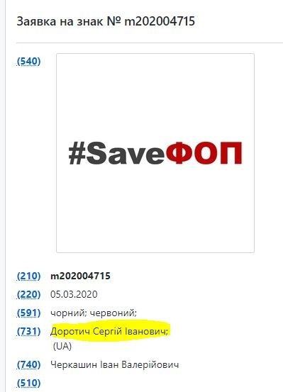 Во-первых сам лозунг SaveФОП с которым люди ходят по улицам - торговая марка которую на свое имя регистрирует сейчас Сергей Доротич.