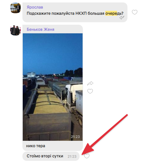 Тогда публичное сетование министра: “Почему от ваших водителей так воняет?” - ввергло меня в ступор. Теперь Вы… Президент, не хотите сами проверить, как и куда сходить по-человечески в туалет или помыться в такой очереди, что на фото? Пошлите Ермака или Шмыгаля посидеть в кабине тягача на такой жаре пару суток и оправиться хотя бы раз в пару часов там же… Соцсети дальнобоев не только полны советов, как проехать мимо весов, но и тем, сколько надо будет стоять возле портов и элеваторов: сутки-двое-трое…