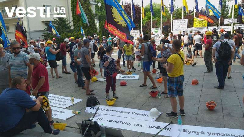 В то же время Telegram-канал издания "Вести" пишет, что на митинг пришли шахтеры из шахты ДТЭК "Доброполье", Донецкой области.
