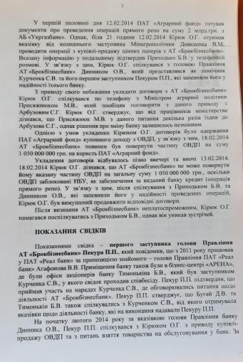 У документах зазначалось: «Напередодні проведення вказаних операцій Кірюк О.Г. разом з Давиденком В.М. зустрічався з Приходьком Б.В. у приміщенні ресторану у місті Києві, де він узгодив з Приходьком Б.В. деталі вказаних операцій».