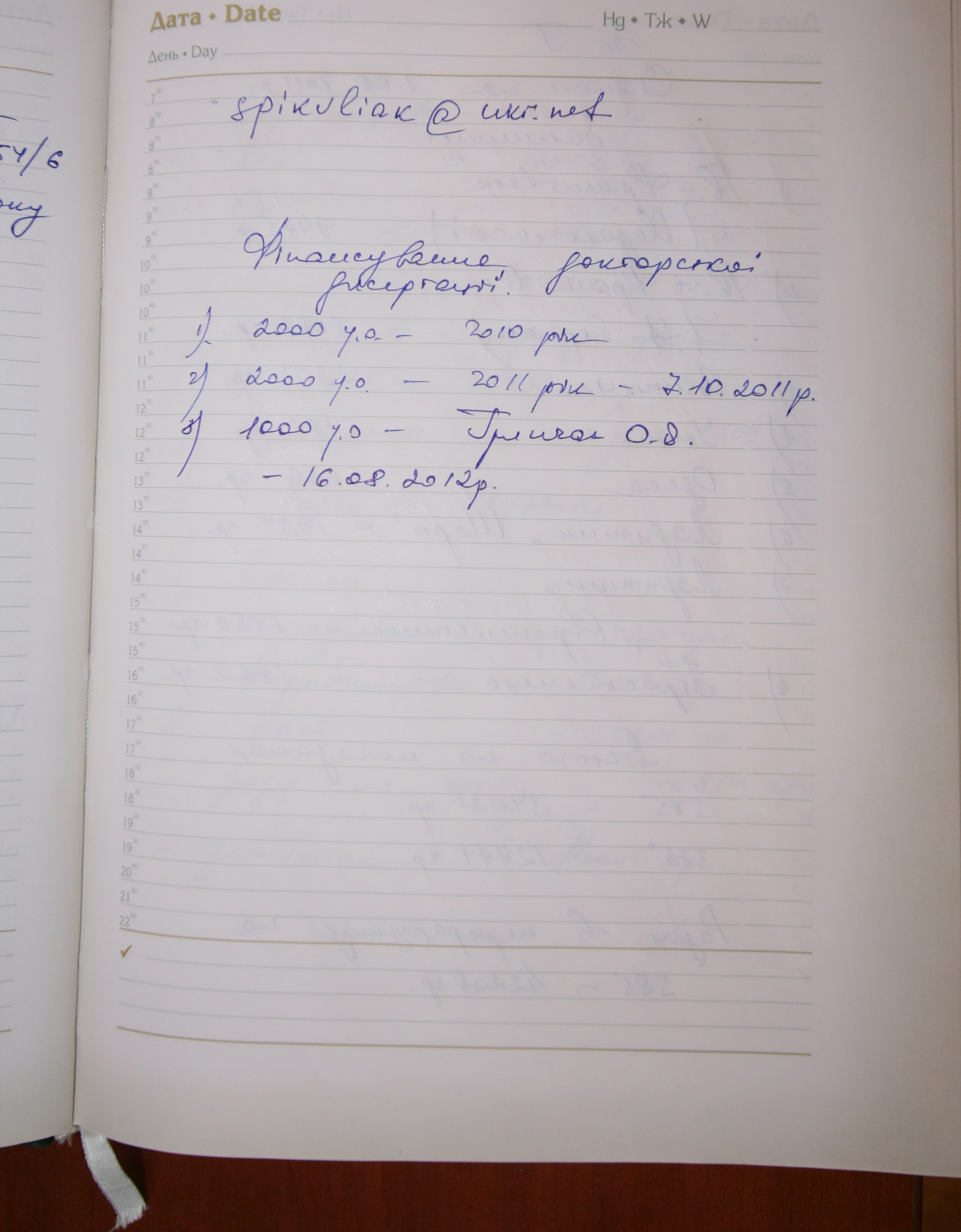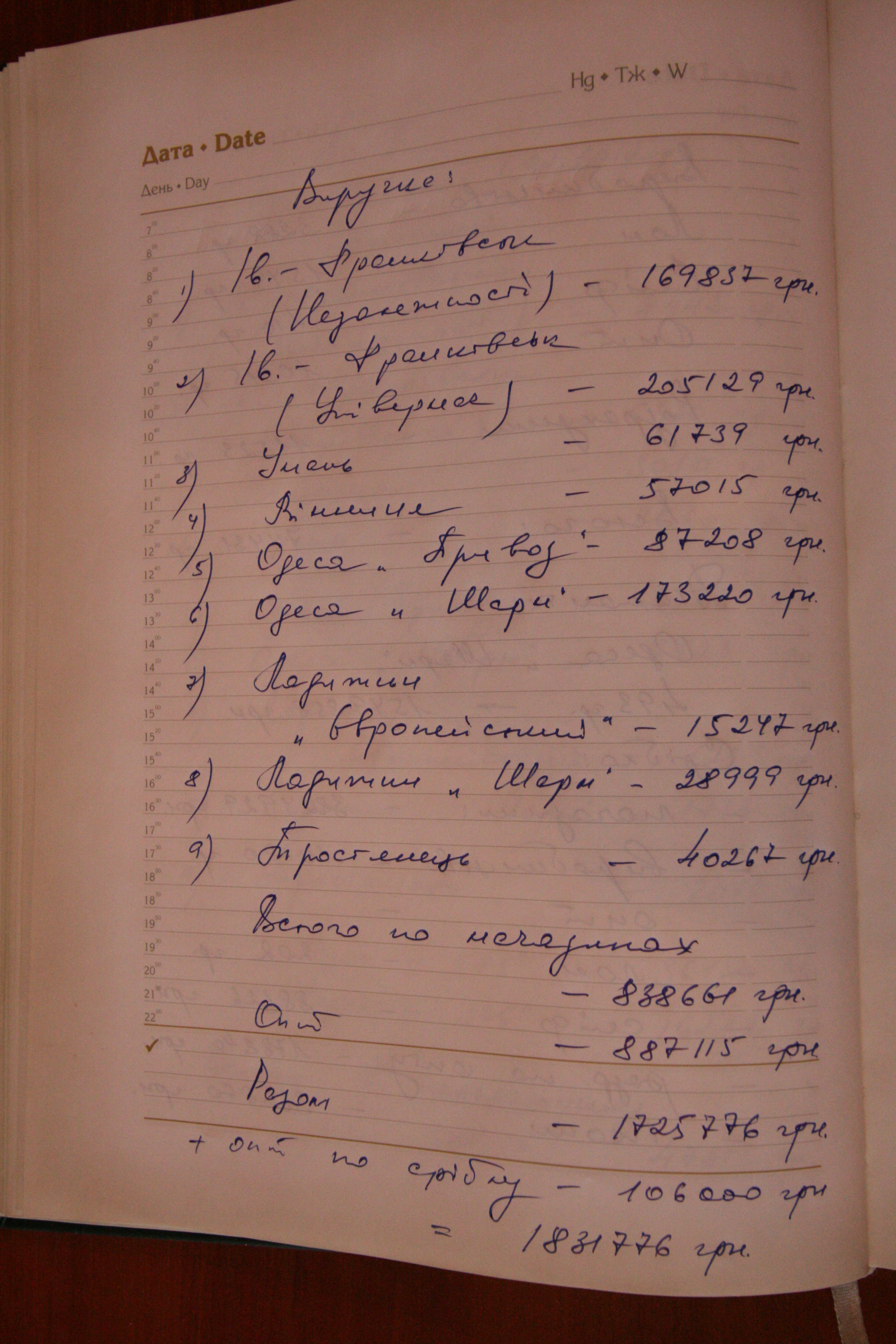 Податківець Геннадій Мазур цю справу не просто прикривав, а обліковував всі оборудки подільської ювелірної компанії, здавав в оренду приміщення цій конторі, і вів переговори про всі махінації з золотом. Підтвердження тому – «золотий щоденник», якого знайшли у Мазура під час обшуків. Там податківець найретельнішим чином, надзвичайно педантично записував усі витрати і доходи. Фіксував не лише дані з реалізації золота в «підшефних» магазинах, а й навіть ціну його наукового звання, суми, які мав отримати зі своїх боржників та особисті витрати своєї дружини ( з примітками «дорого»).