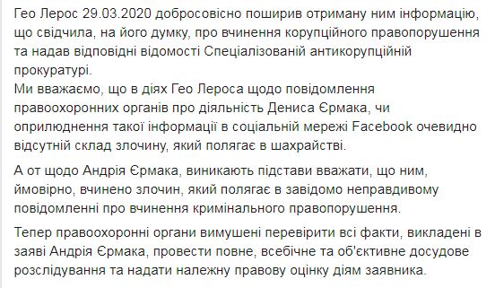 В связи со скандалом с так называемыми «пленками Ермака», обнародованными народным депутатом Украины Гео Леросом, Печерский районный суд города Киева обязал Офис Генерального прокурора открыть еще одно уголовное производство.