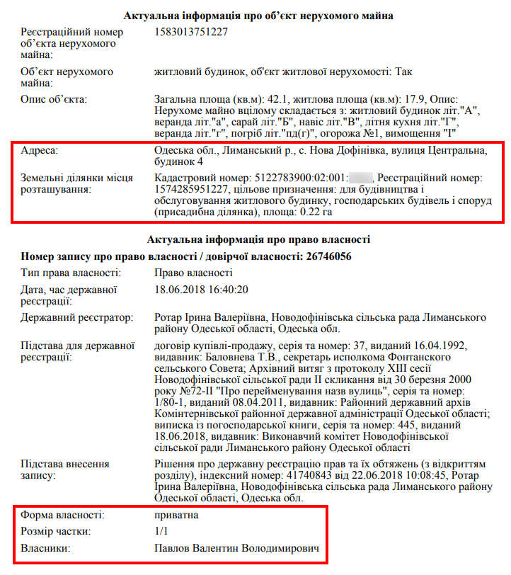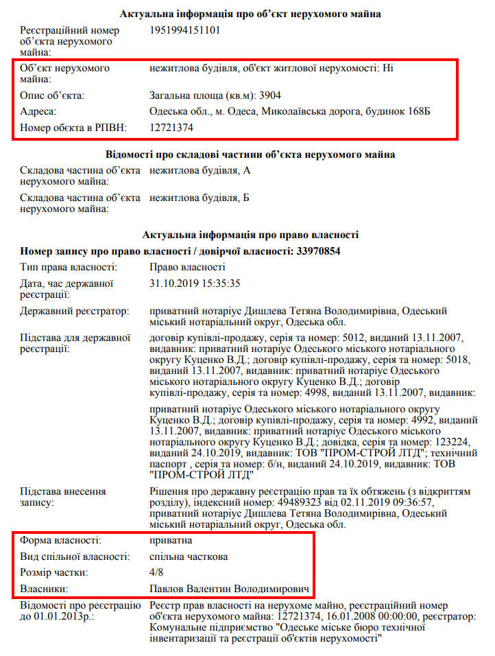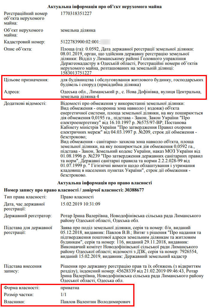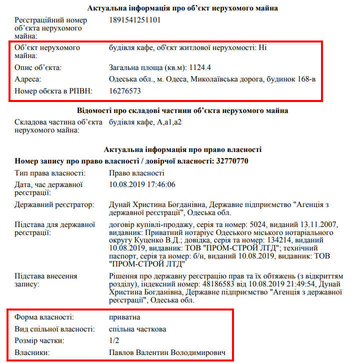 У власності родини Павлових ми нарахували зо три десятки об’єктів нерухомості в межах Одеської області. З них низка земельних ділянок під готель отримана безоплатно; придбані житлові та нежитлові приміщення. До прикладу, долею одного з приміщень готелю володіє і член ВРП Ігор Артеменко на підставі договору купівлі-продажу від 2007 року.