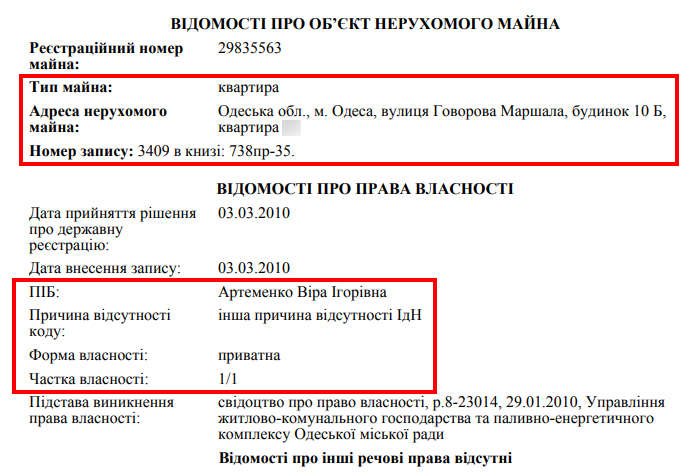 До речі, ось іще один цікавий факт. Молодша дочка Артеменка у 2010-му, коли їй було всього 13 років, отримала свідоцтво про право власності на квартиру в Одесі по вулиці Говорова. Саме там, де Віра Агопян має два паркомісця.