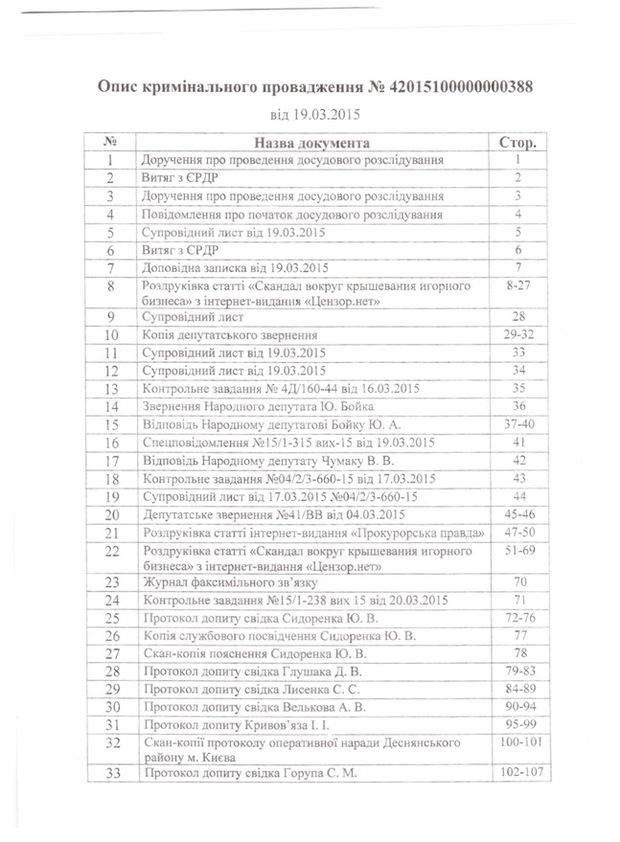 В сентябре 2014-го были запланированы обыски у фигурантов этого дела, однако, по заявлению подполковника милиции, заместители генпрокурора Яремы – Шокин, Герасимюк и Даниленко запретили их проводить, а криминальное производство «под шумок» передали в другой отдел ГПУ, где, дескать, расследование ведётся лишь формально. Все это подводит к мысли, что фигуранты этого дела, а также действующее руководство ГПУ банально «порешали» все.