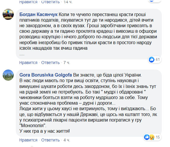 Тем временем пользовательница с ником «Гора Борусовка Голгофа» указала, что именно из-за таких «мудрых» чиновников люди вынуждены ехать за границу, так как власти боятся взять на работу кого-то более умного и образованного, чем они сами.