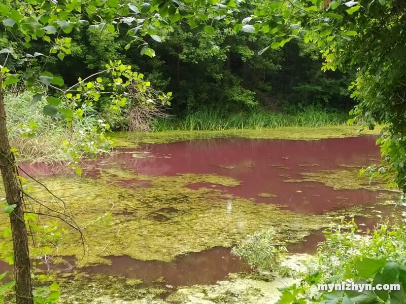 На Черниговщине водоем окрасился в розовый цвет: фото необъяснимого явления