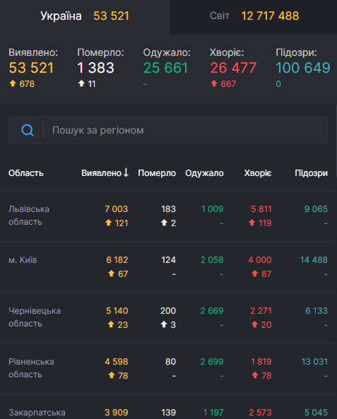 По состоянию на утро воскресенья, 12 июля, в Украине официально подтверждено 53 251 случаев коронавируса COVID-19. Из них 678 были выявлены за последние сутки.
