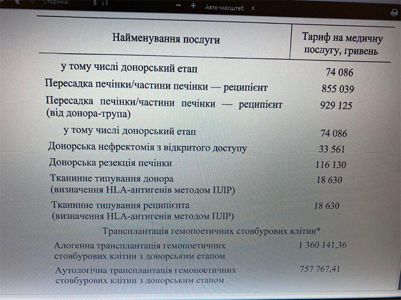 - Аутологическая трансплантация гемопоэтических стволовых клеток с донорским этапом — 757 767,41 гривен.