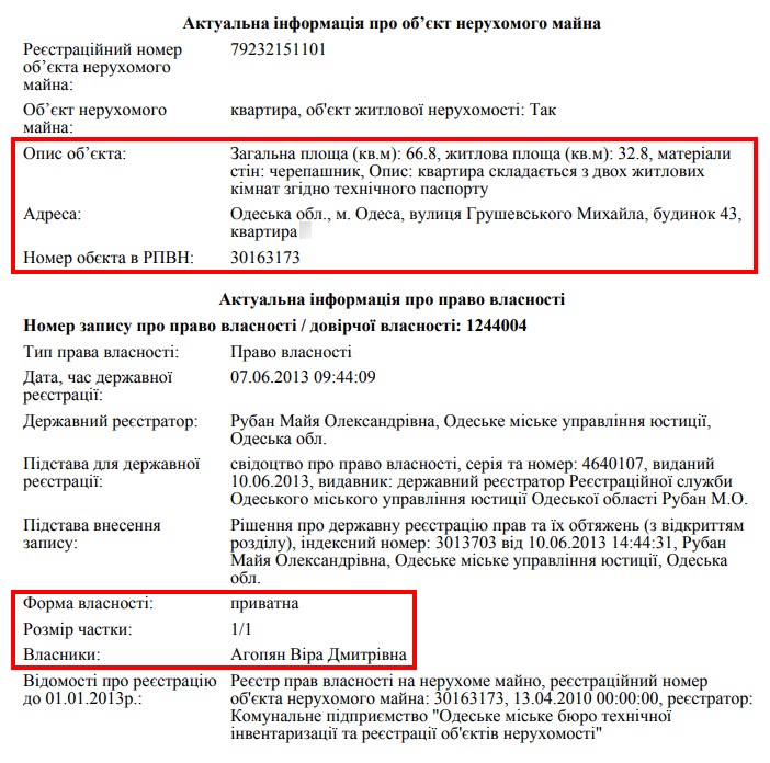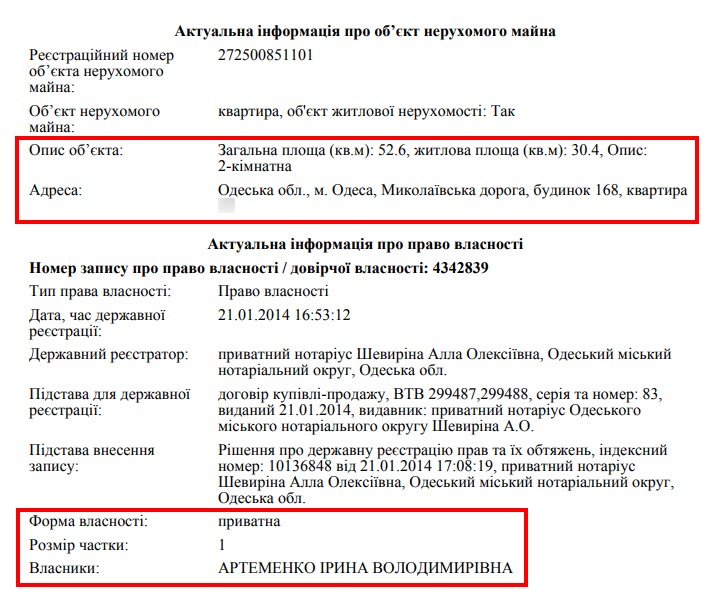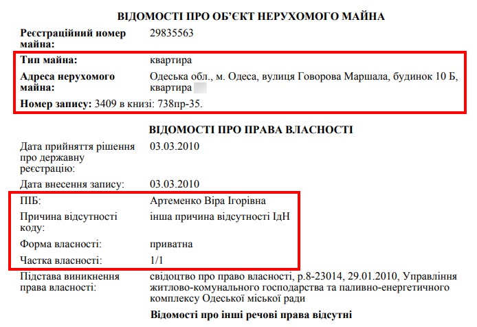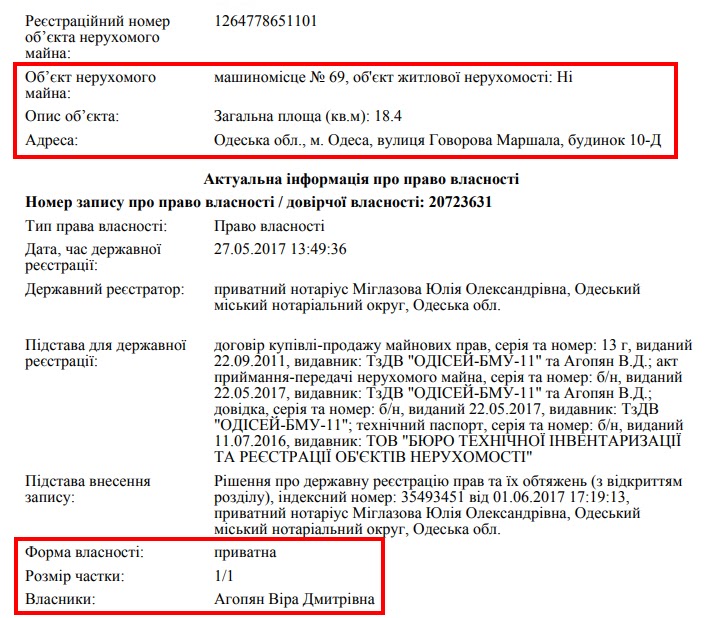 Кстати, вот еще один интересный факт. Младшая дочь Артеменко в 2010-м, когда ей было всего 13 лет, получила свидетельство о праве собственности на квартиру в Одессе по улице Говорова. Там, где Вера Агопян имеет два паркоместа.