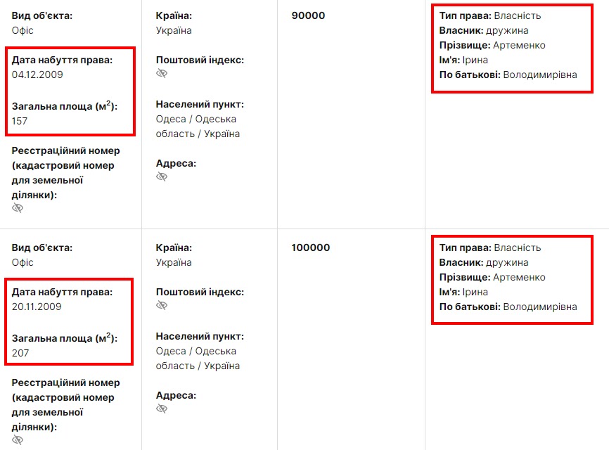 Дополнительно в распоряжении жены члена ВСП с 2009 года два нежилых помещения в Одессе, приобретенные почти за 24 000 долларов США. На стадии строительства еще одно большое офисное помещение вместе с паркоместами.