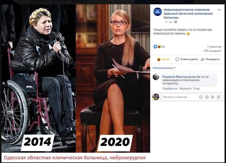 Врачи из Одессы опубликовали 2 фото Юлии Тимошенко, отметив ее разительное преображение. Пользователи обратили внимание на иронию врачей.