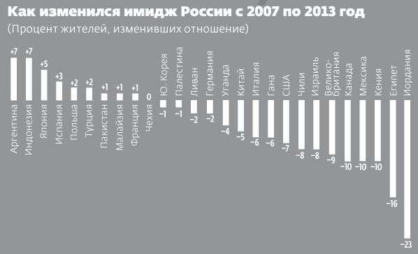 Судя по результатам опроса, за последние годы имидж России в мире ухудшился, и больше всего опять же на Ближнем Востоке - сказываются последствия «арабской весны».