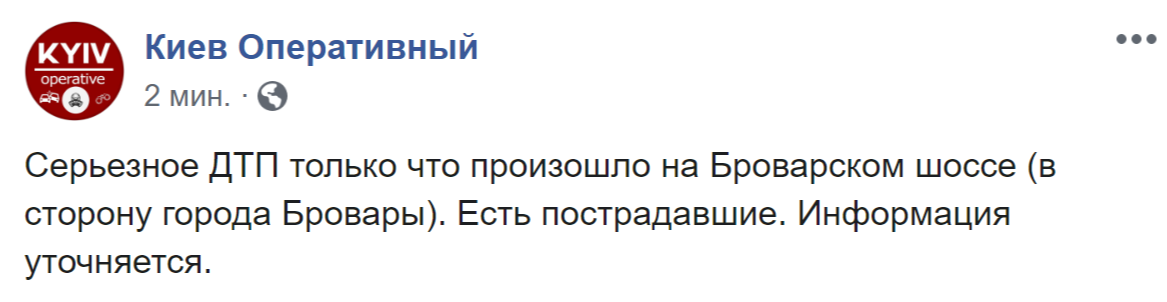 О пострадавших также написали на странице "Киев оперативный" в Facebook. Там отметили, что авария произошла в направлении Броваров.