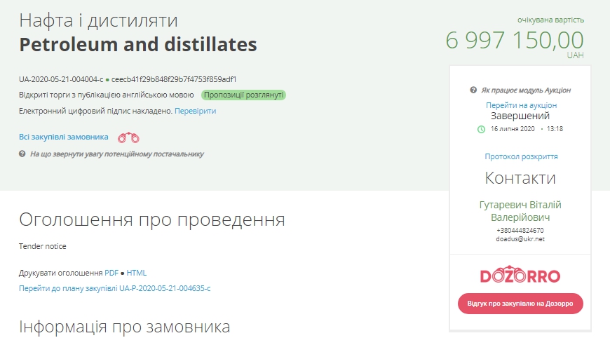 Интересно, что фирма существует почти 25 лет, но в торгах ей стало везти только в последние два года. По данным Prozorro, за 2019-2020 годы с «НАФТОКОМЕРЦ» подписали договоров на поставку топлива на 4,5 млн грн.