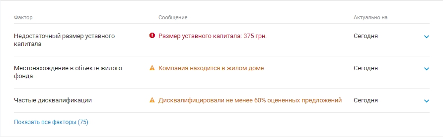 Уставной капитал компании всего 375 грн. Также, фирму часто дисквалифицировали во время проведения торгов. По данным YouControl, частые дисквалификации могут свидетельствовать о том, что фирма-аутсайдер участвует в закупках для имитации конкуренции и может отказываться от победы в пользу другого участника.
